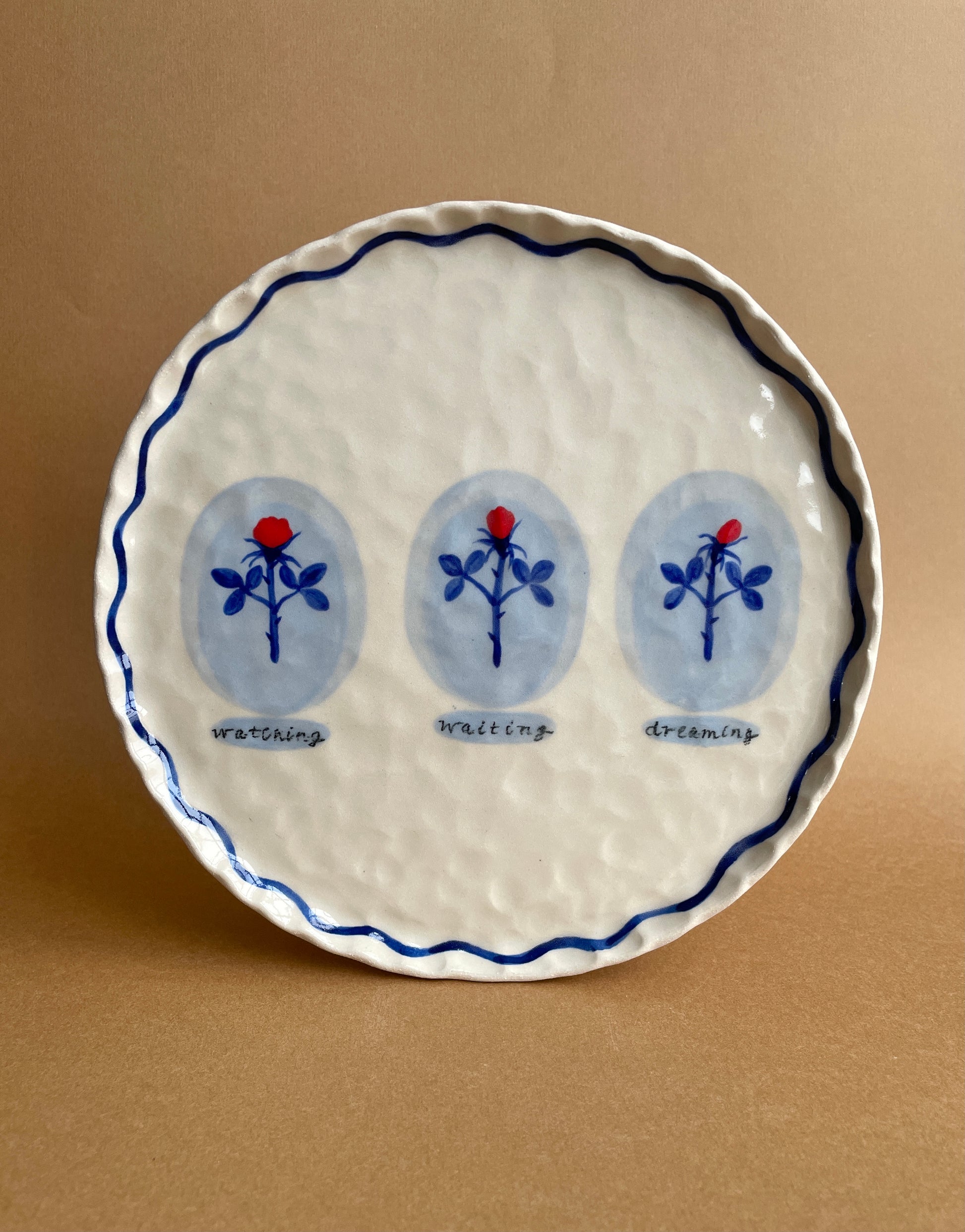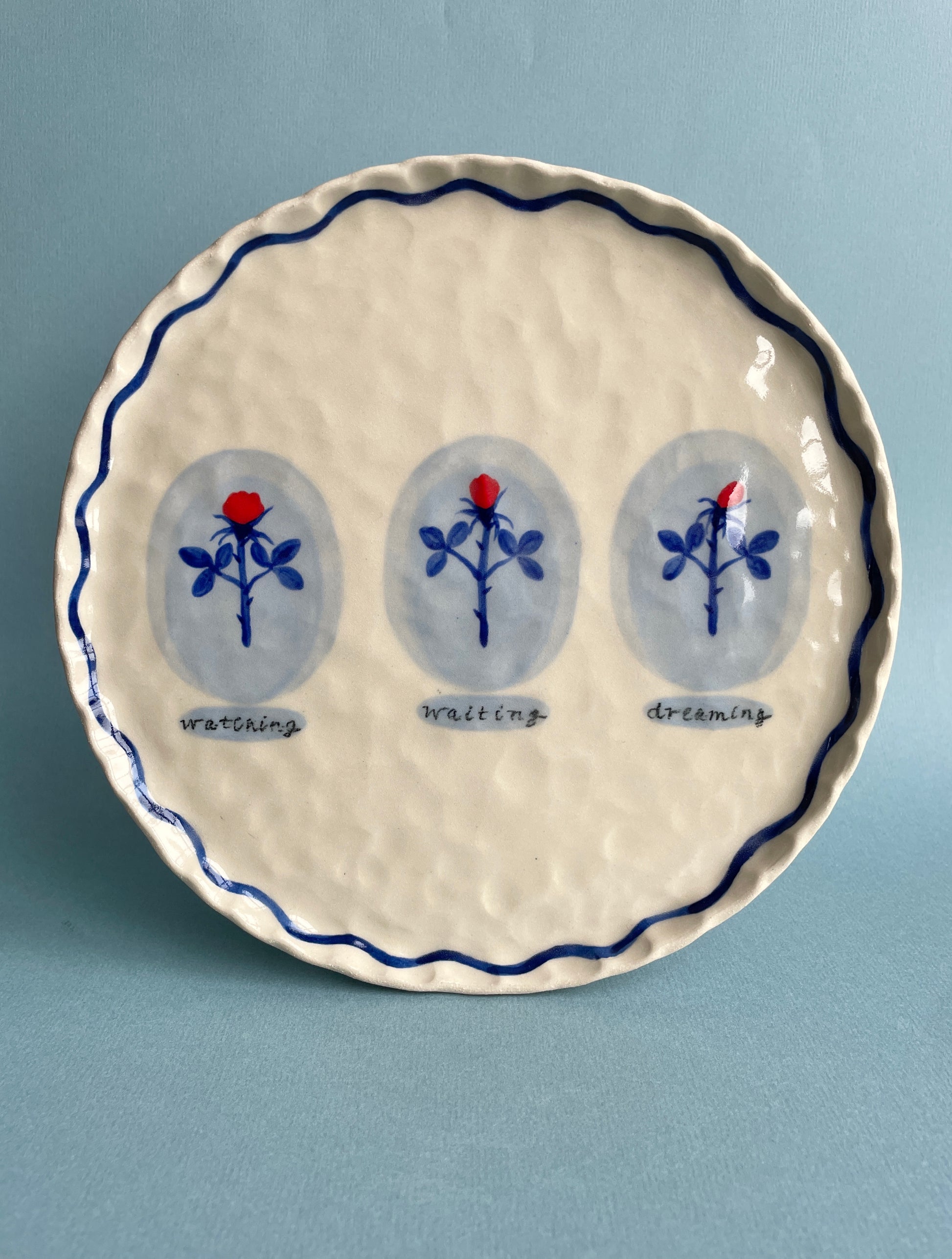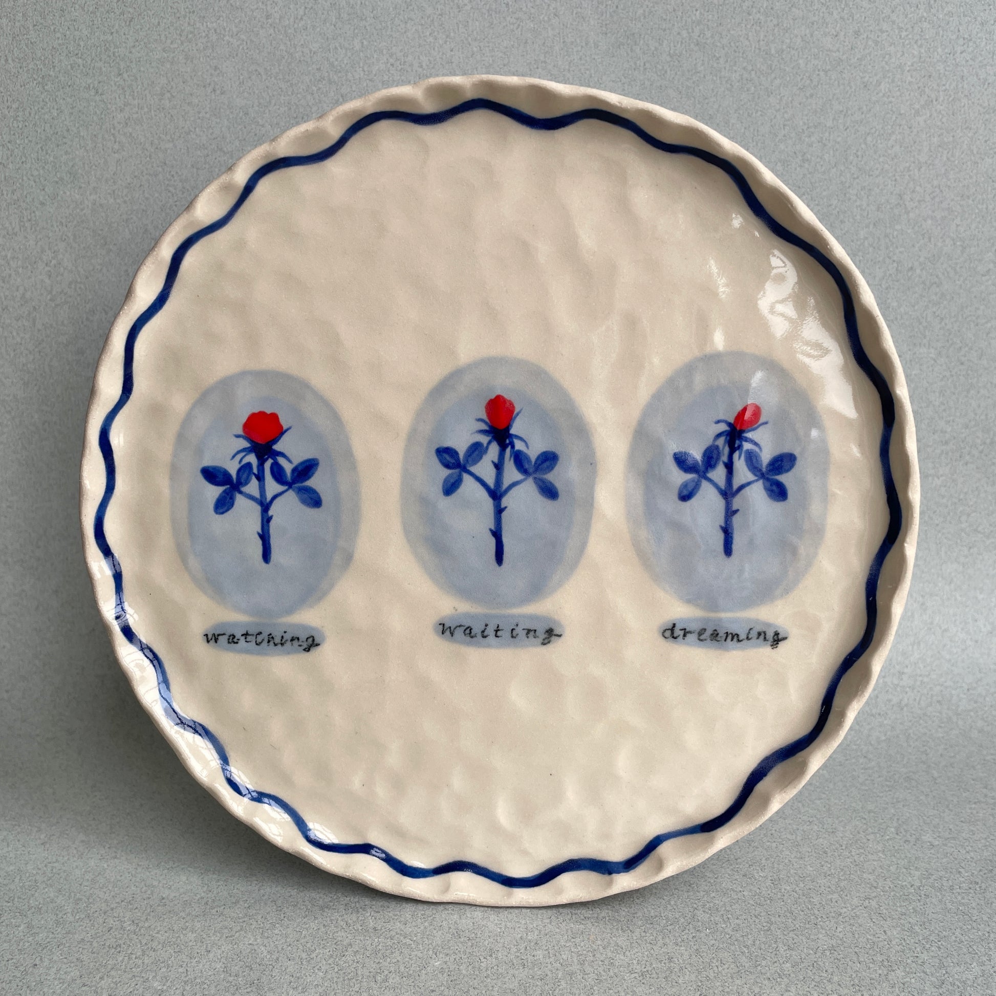 Finished with a clear glaze, the plate can be displayed on a wall or stood on a shelf.