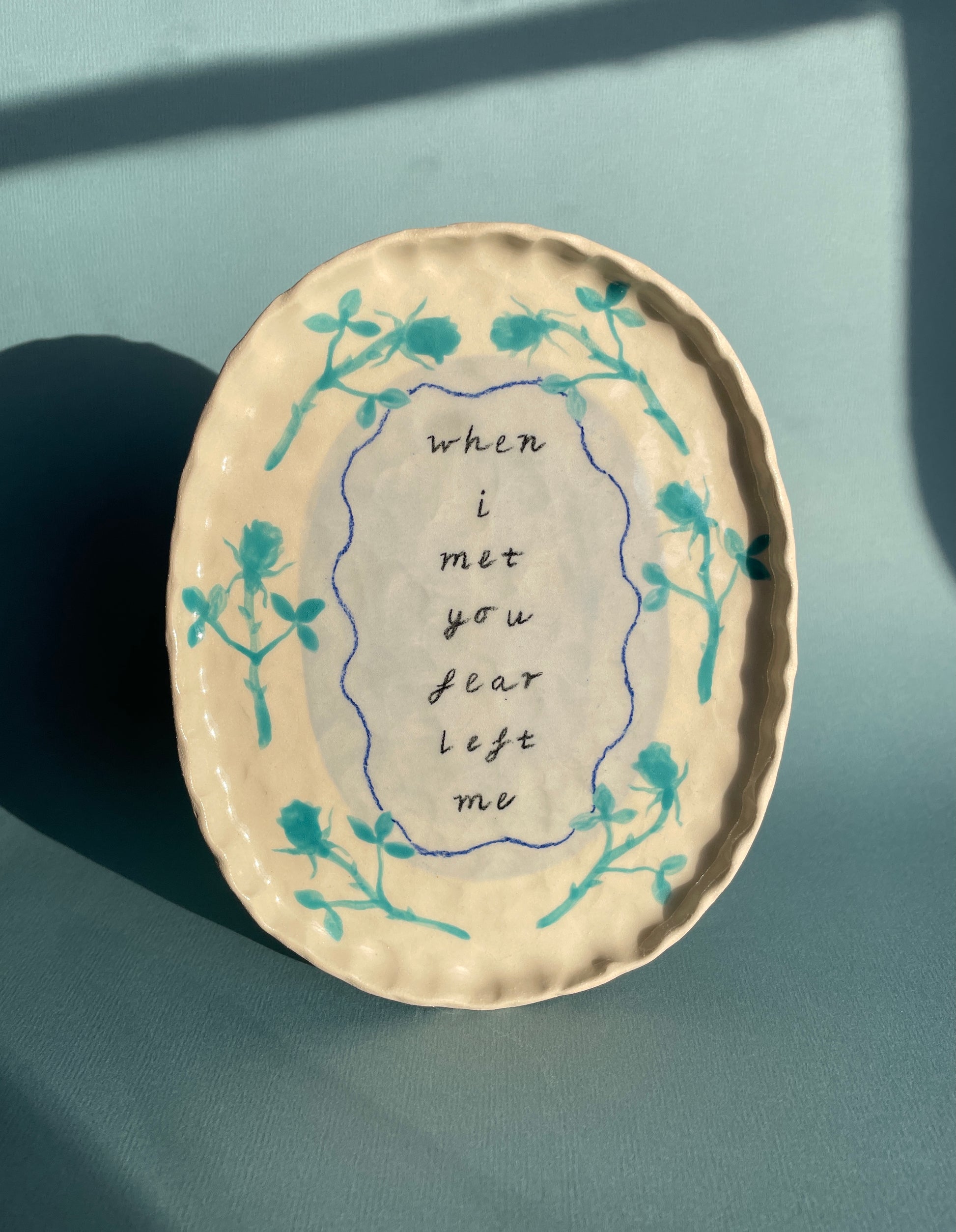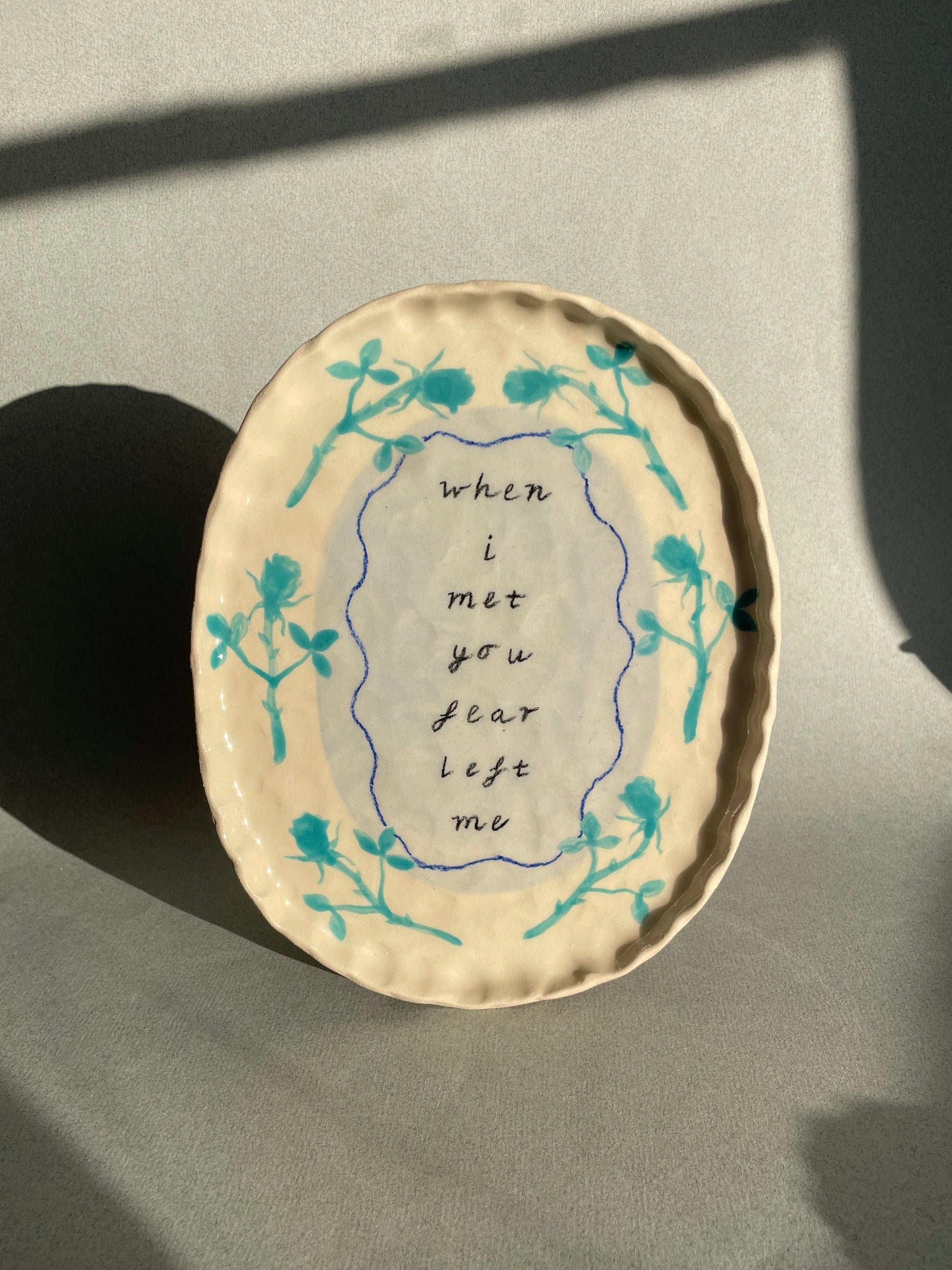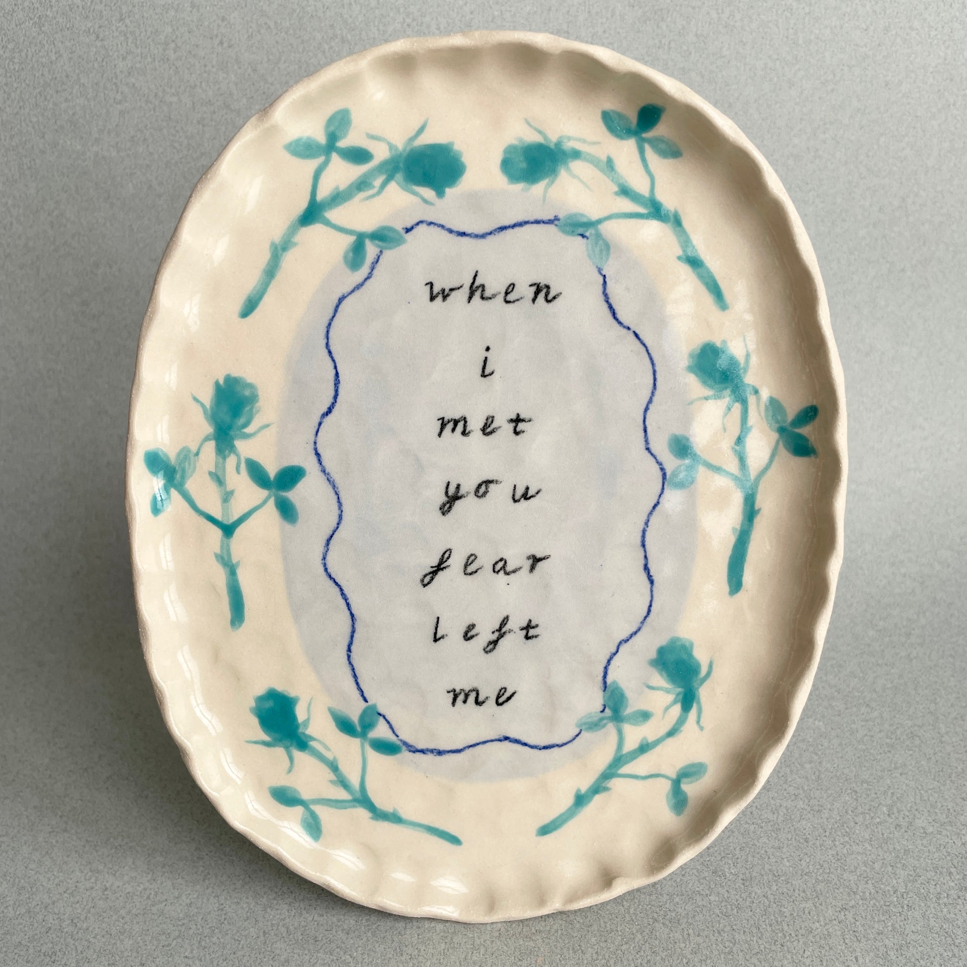 Finished with a clear glaze, the plate can be displayed on a wall or stood on a shelf.