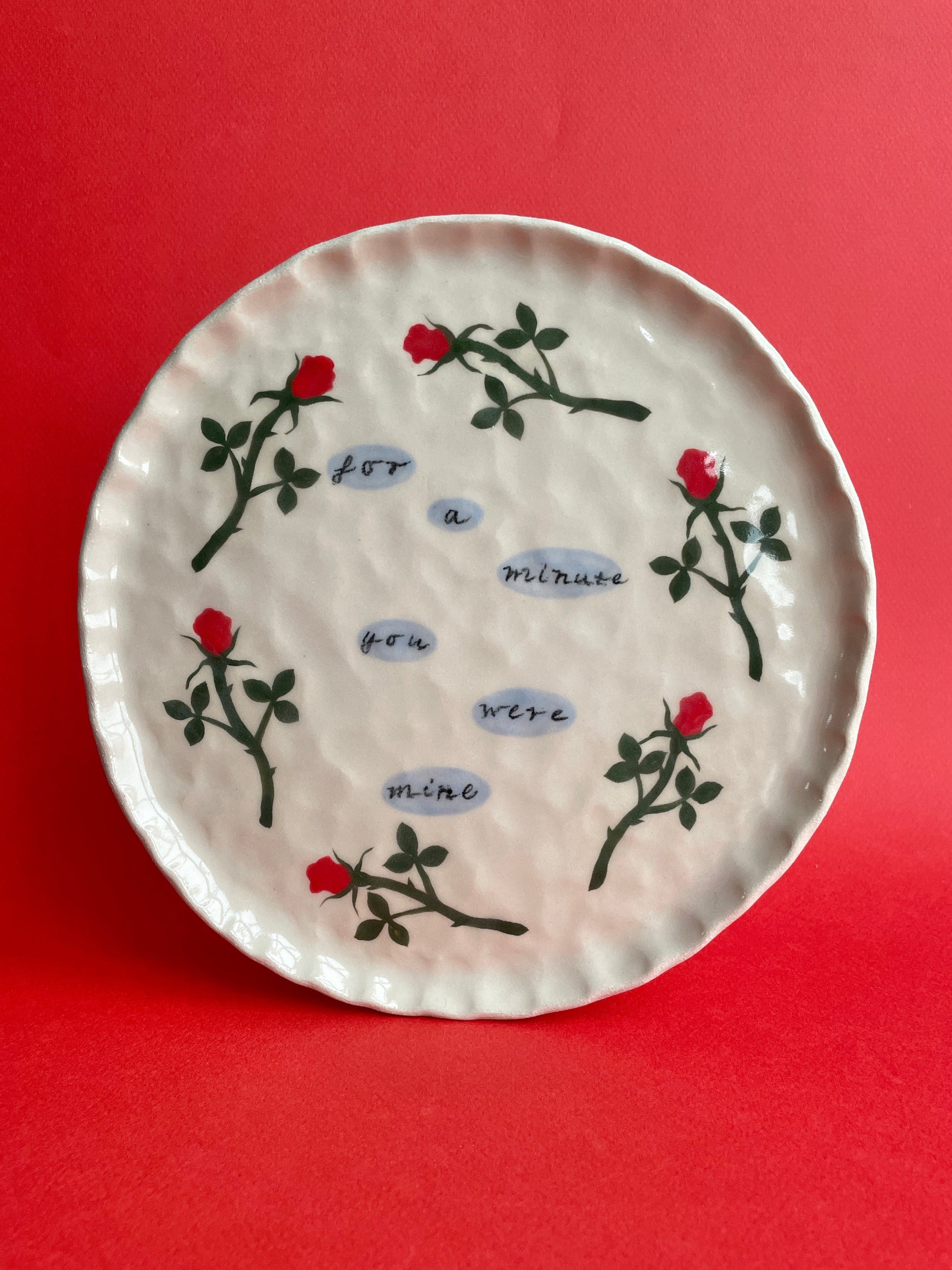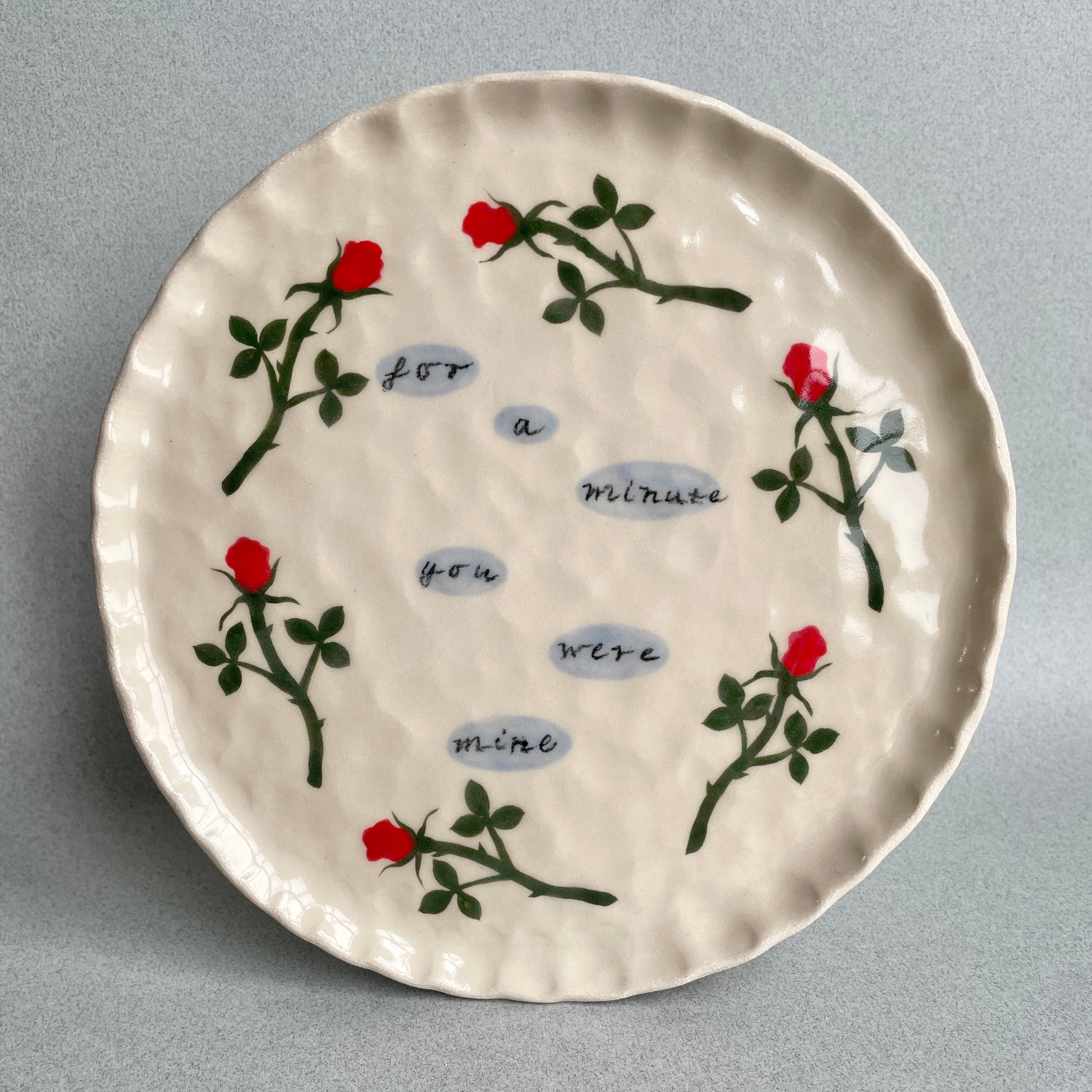 Finished with a clear glaze, the plate can be displayed on a wall or stood on a shelf.