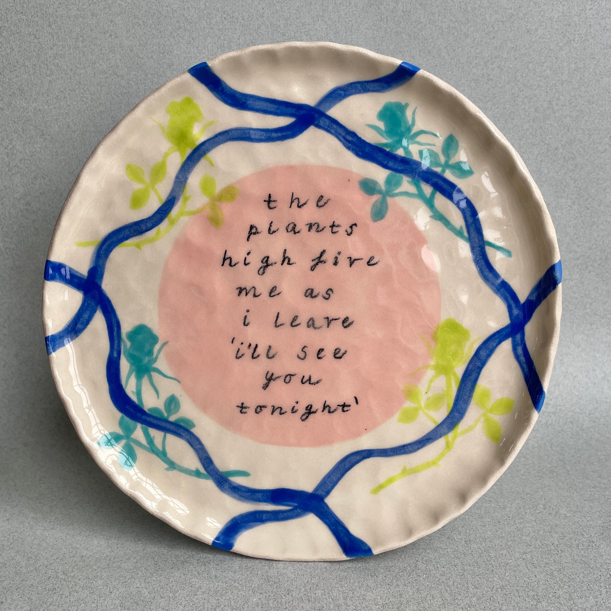 Finished with a clear glaze, the plate can be displayed on a wall or stood on a shelf.