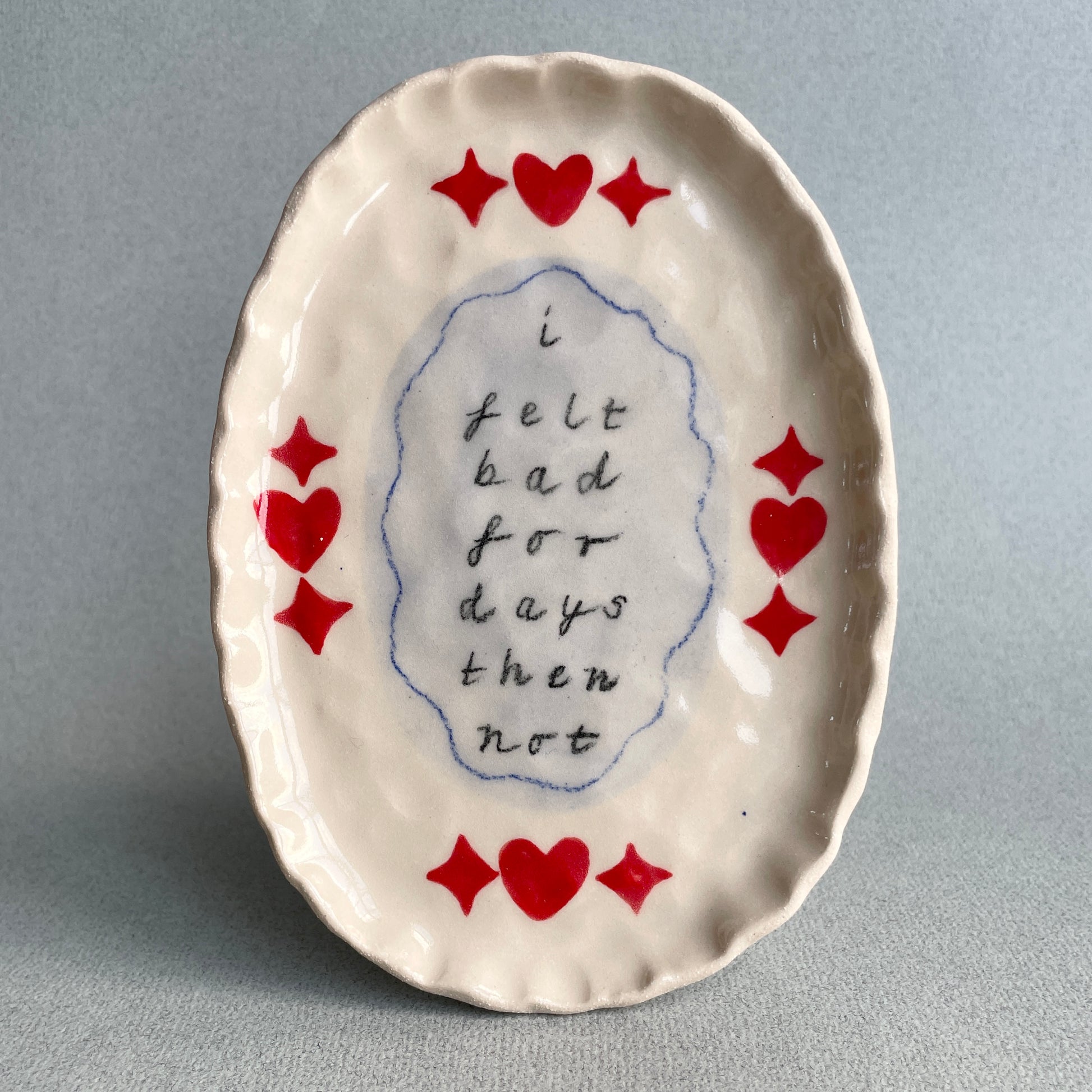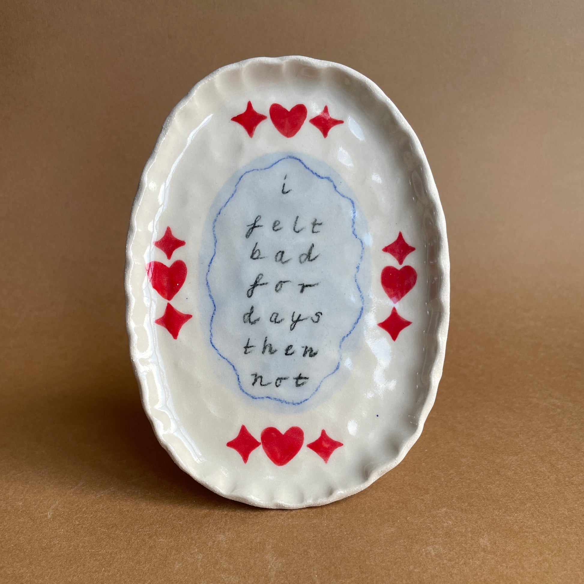 Finished with a clear glaze, the plate can be displayed on a wall or stood on a shelf.