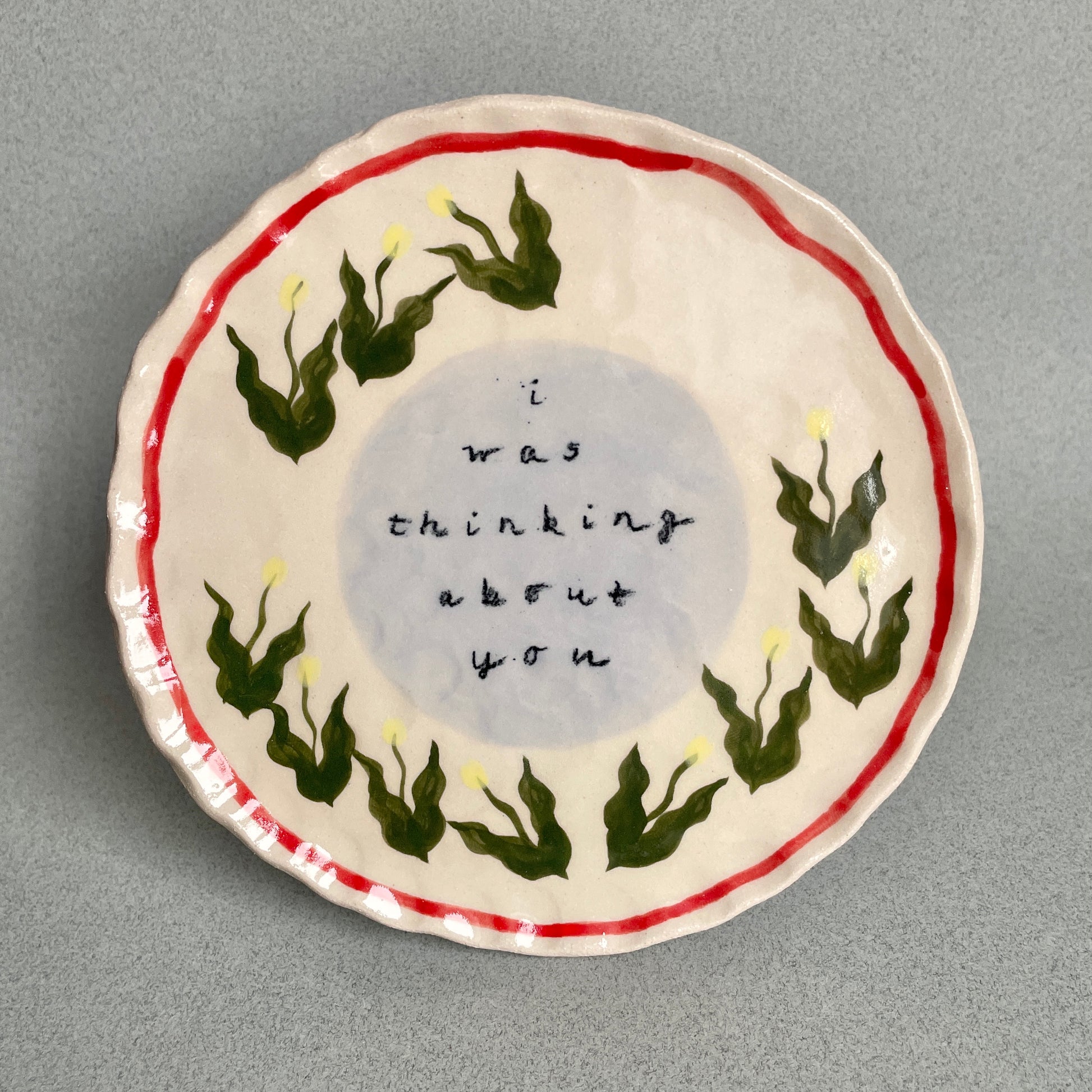 Finished with a clear glaze, the plate can be displayed on a wall or stood on a shelf.