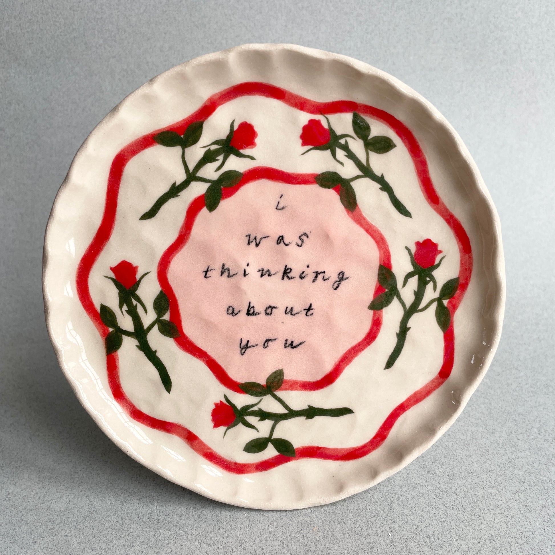 Finished with a clear glaze, the plate can be displayed on a wall or stood on a shelf.