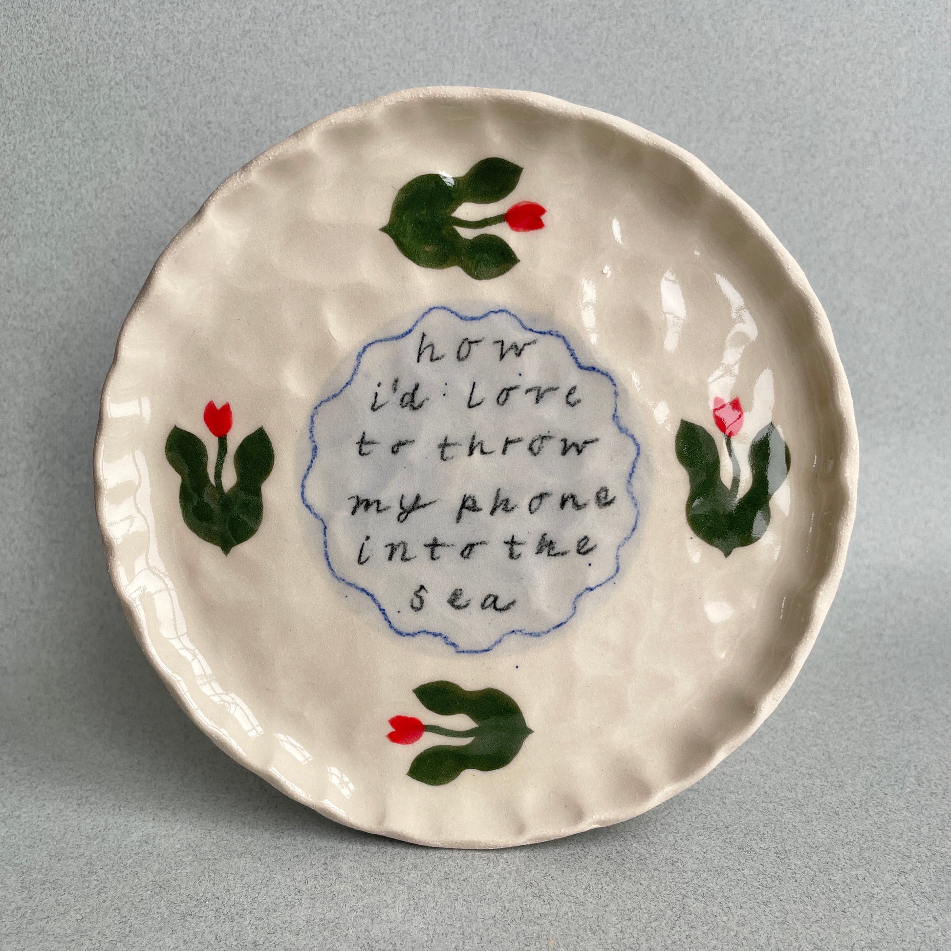 Finished with a clear glaze, the plate can be displayed on a wall or stood on a shelf.