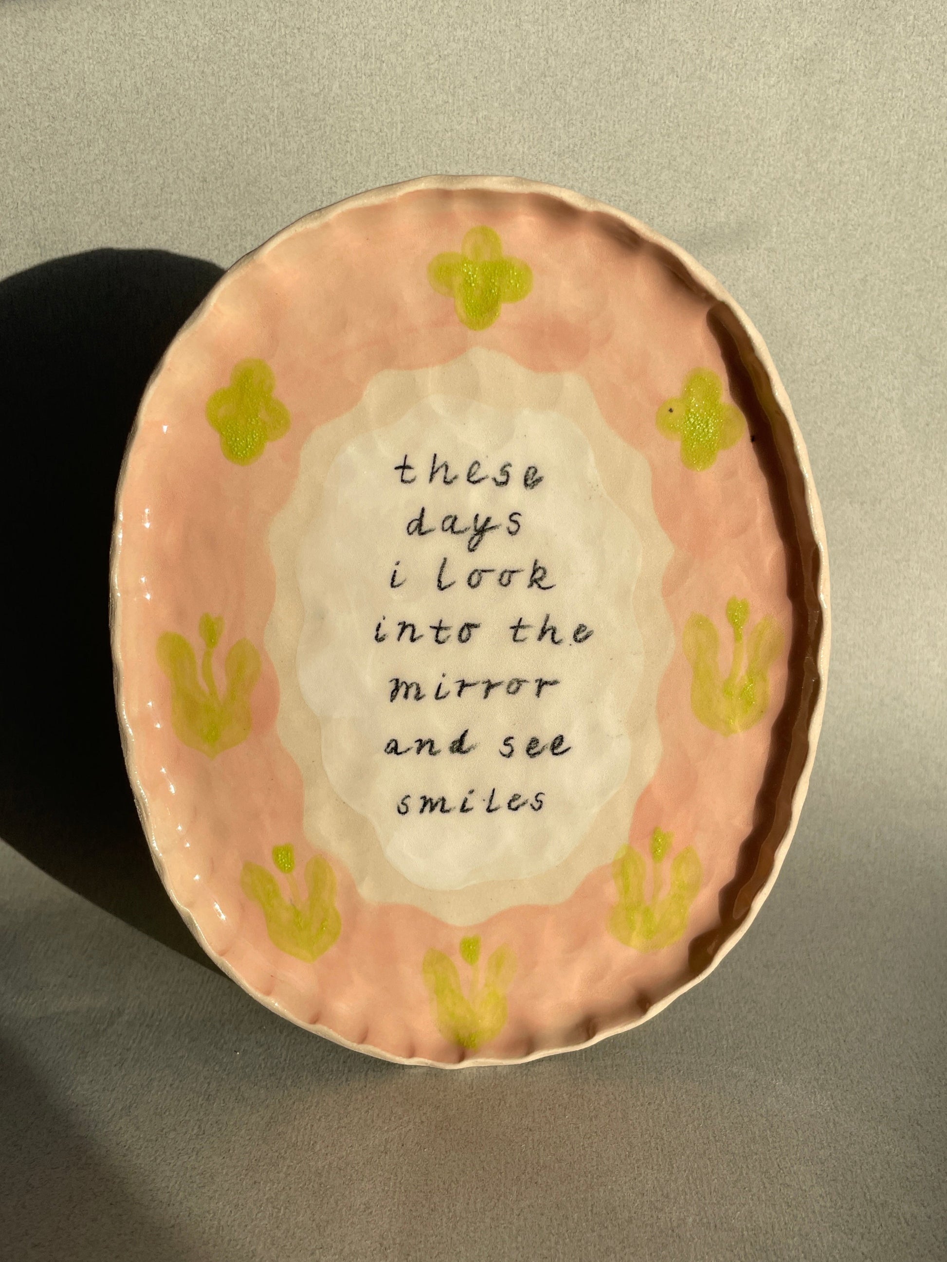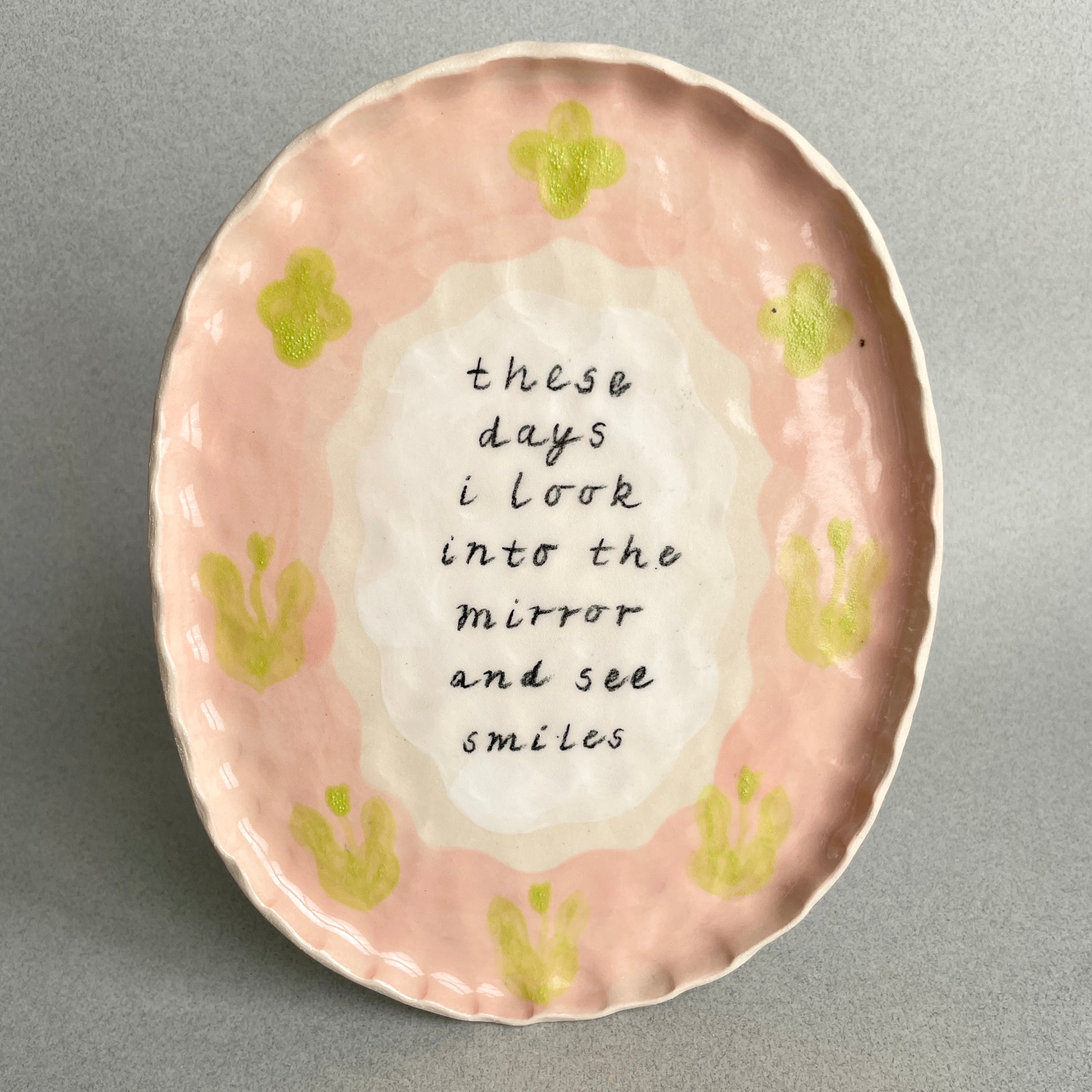 Finished with a clear glaze, the plate can be displayed on a wall or stood on a shelf.