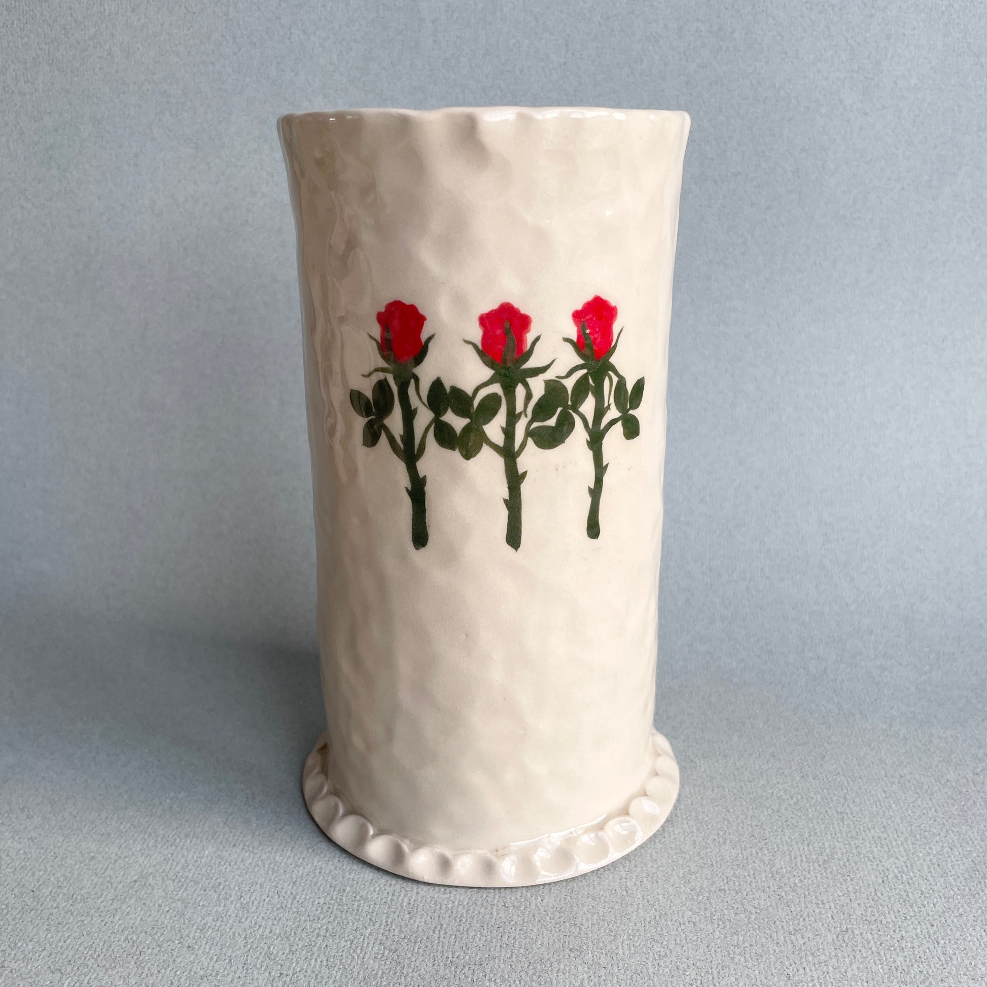 Handmade slab built vase, shaped by tenderly pinching the clay, creating an undulating texture.