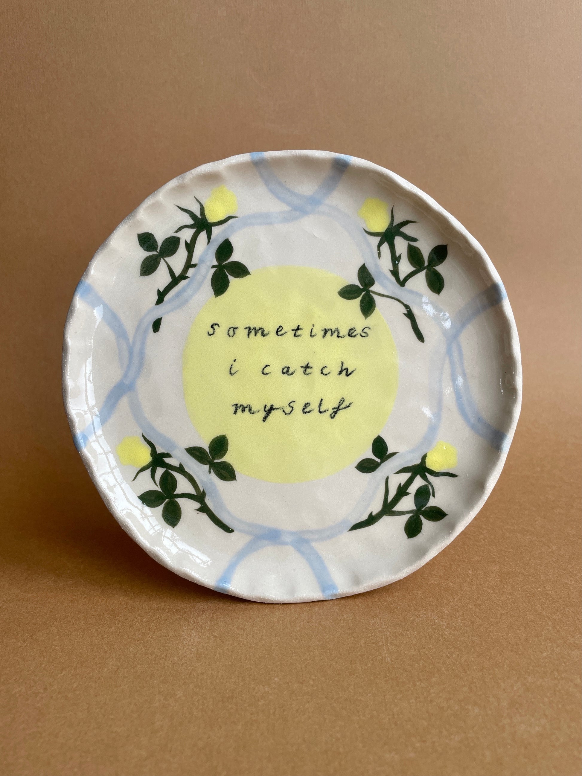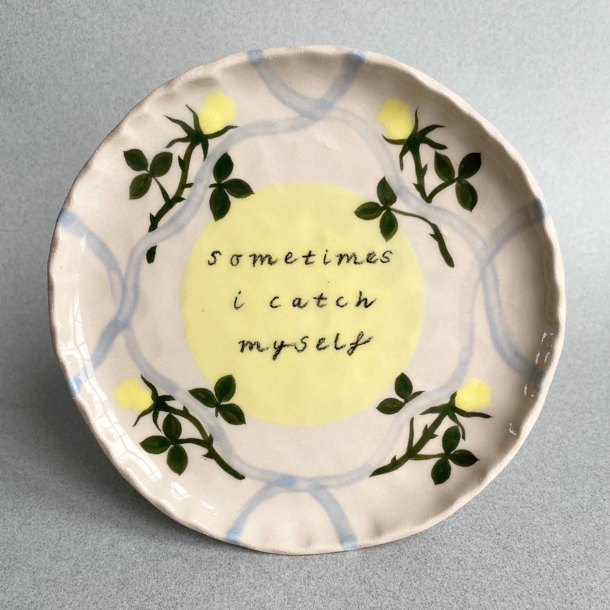 Finished with a clear glaze, the plate can be displayed on a wall or stood on a shelf.