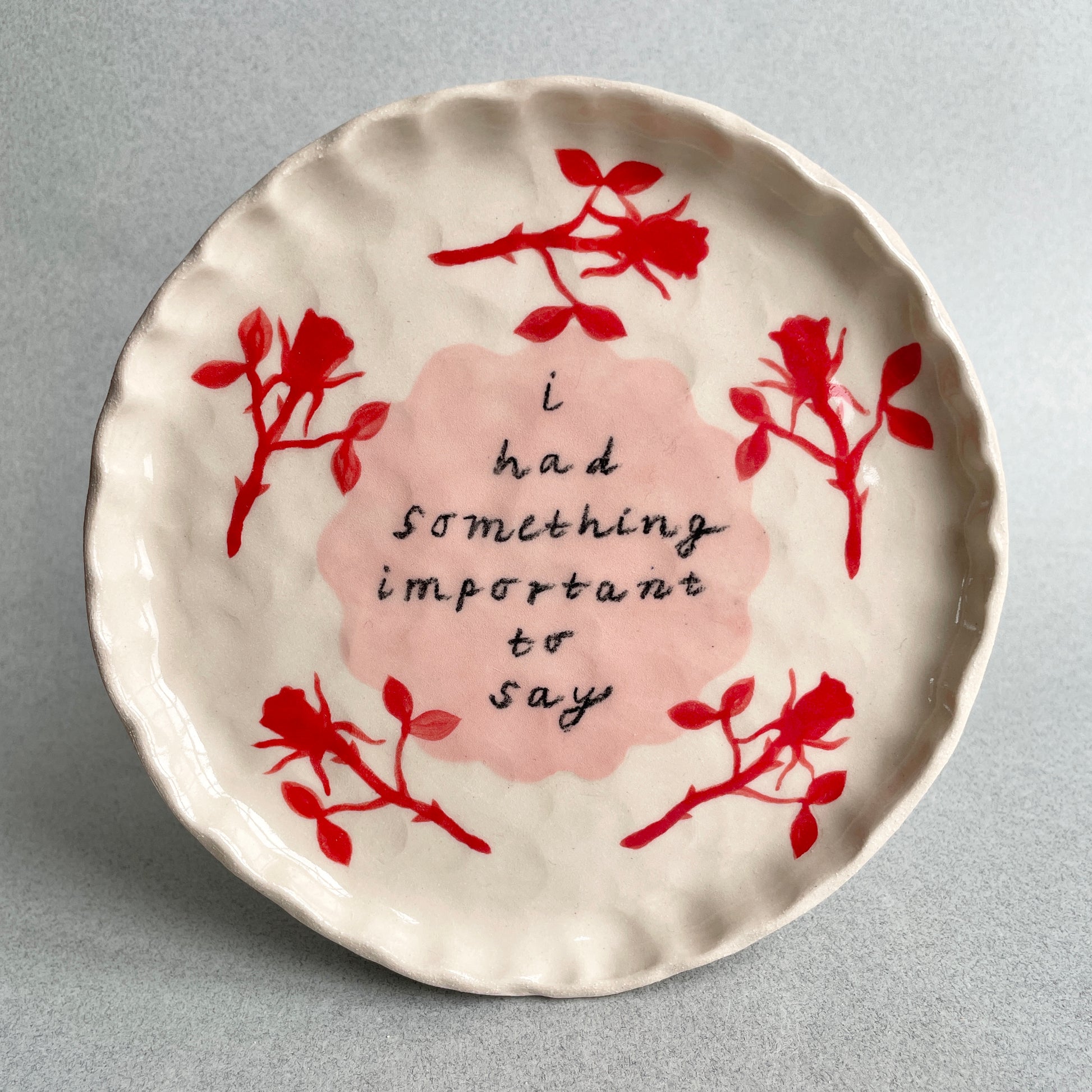 Finished with a clear glaze, the plate can be displayed on a wall or stood on a shelf.