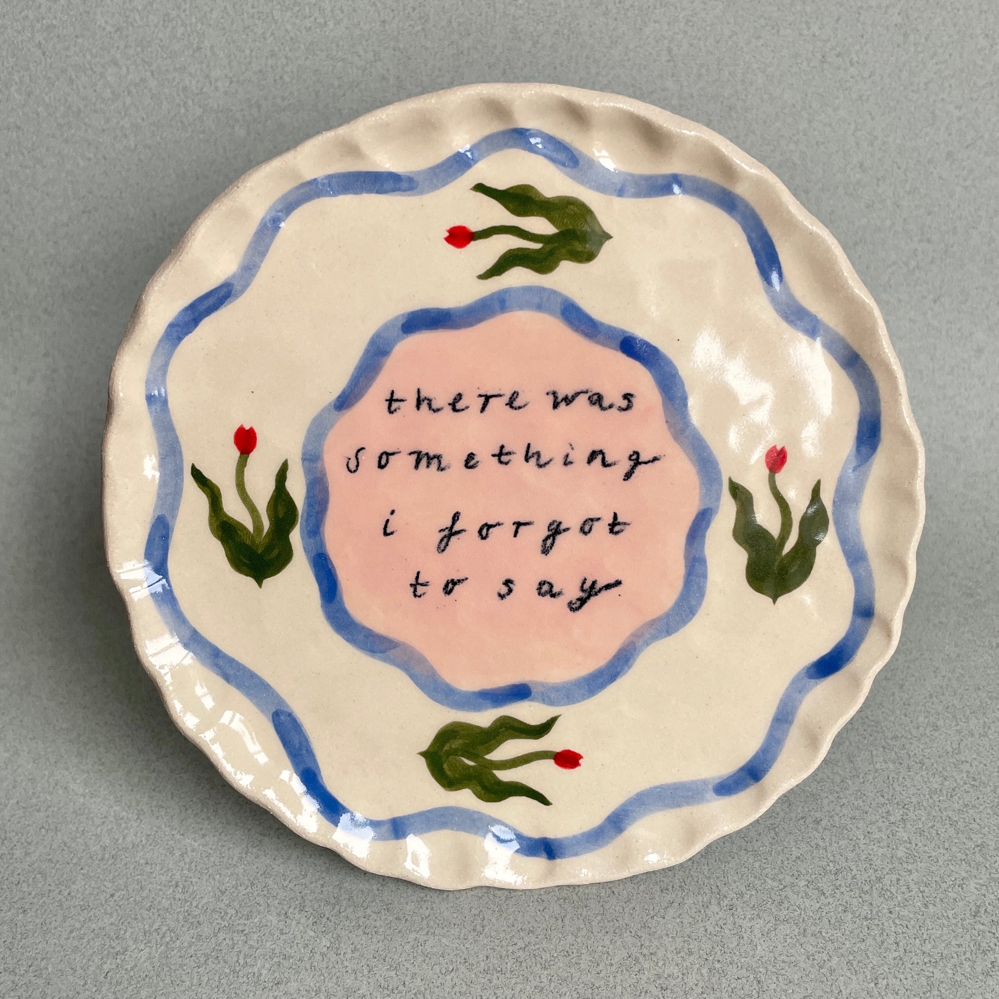 Finished with a clear glaze, the plate can be displayed on a wall or stood on a shelf.