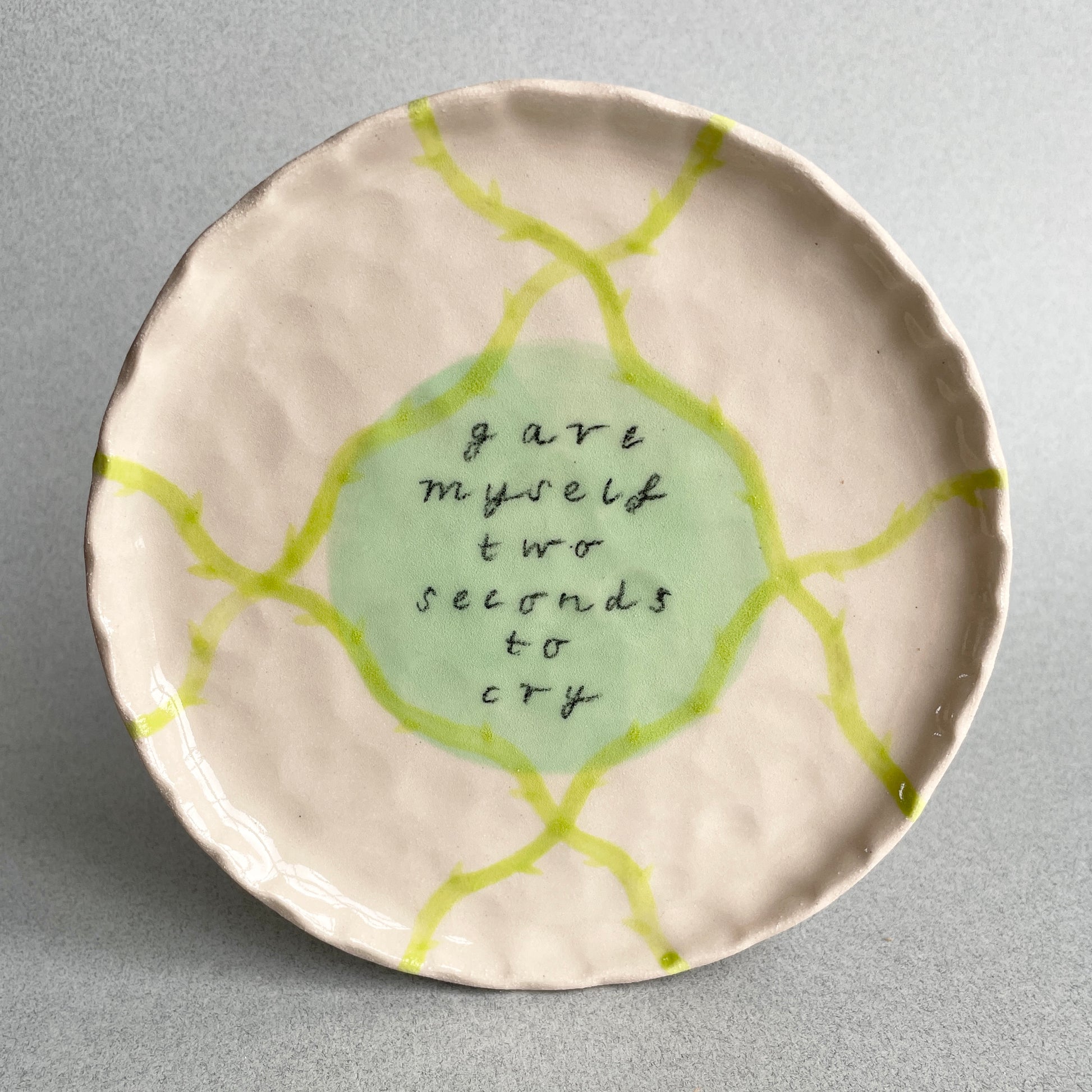 Finished with a clear glaze, the plate can be displayed on a wall or stood on a shelf.
