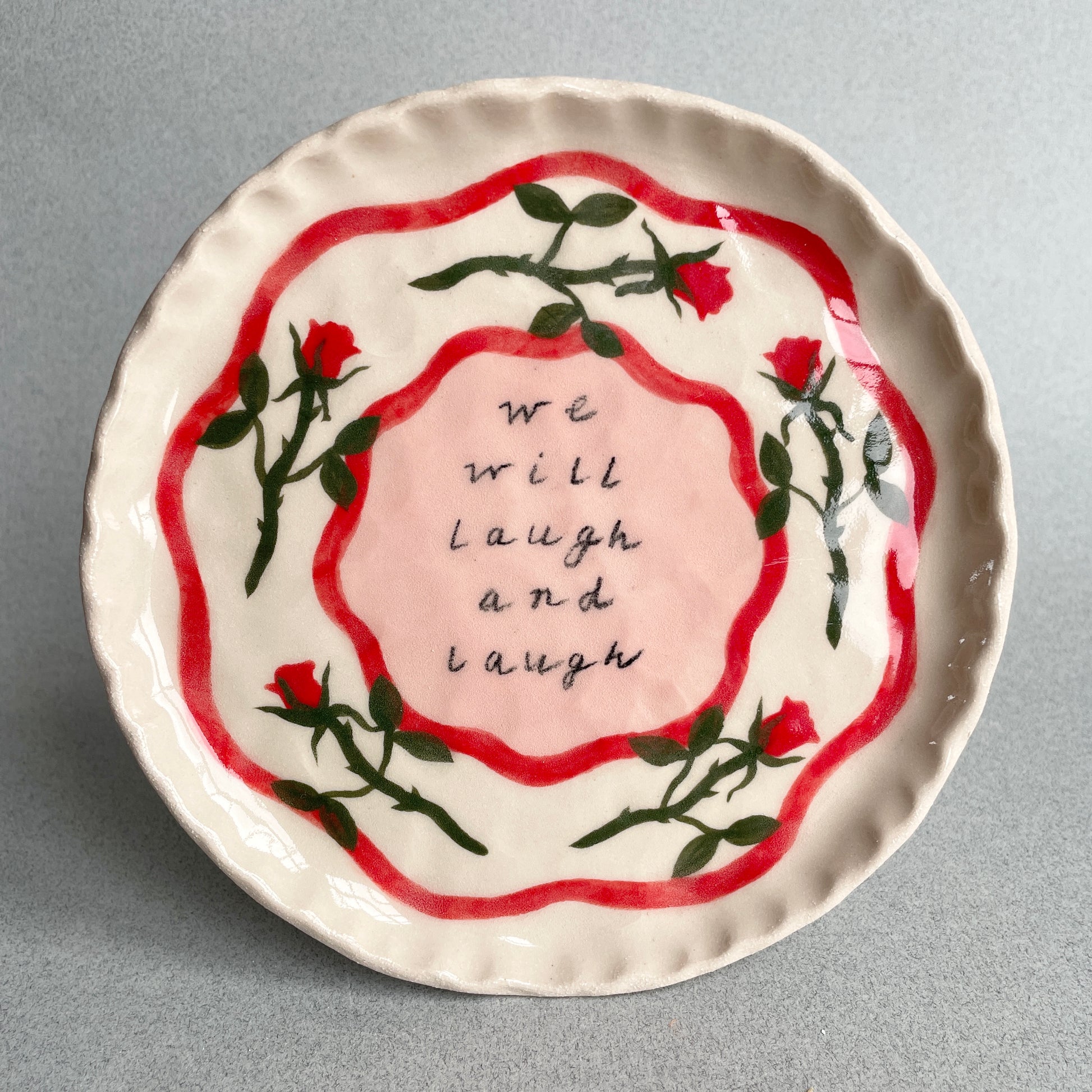 Finished with a clear glaze, the plate can be displayed on a wall or stood on a shelf.