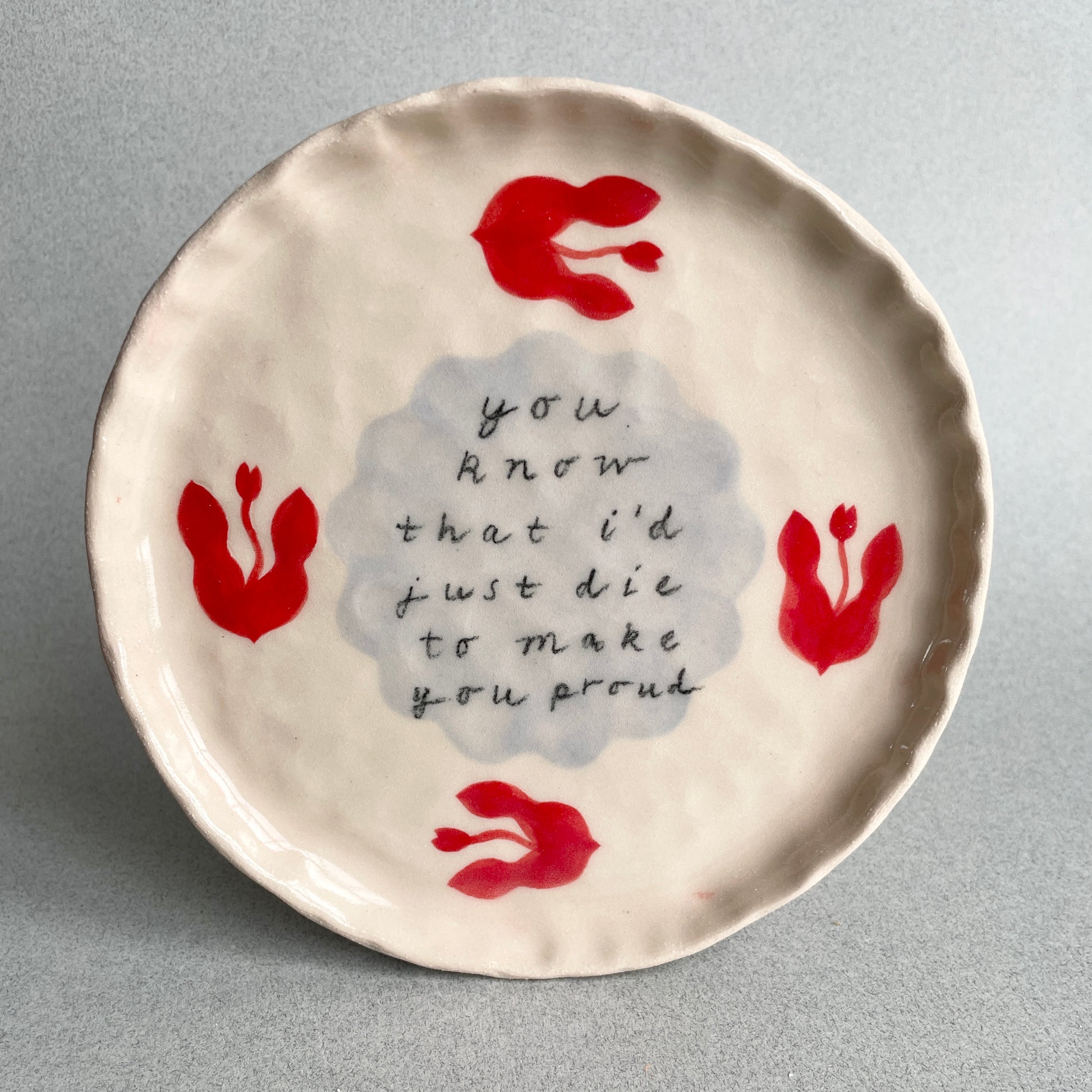 Finished with a clear glaze, the plate can be displayed on a wall or stood on a shelf.